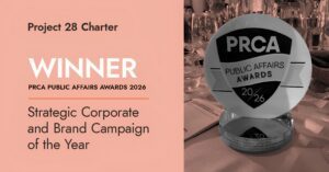 The Project 28 Charter campaign has been awarded Corporate & Brand Campaign of the Year at the 2026 PRCA Public Affairs Awards, one of the UK’s most respected platforms for recognising excellence in public affairs and strategic campaigning.